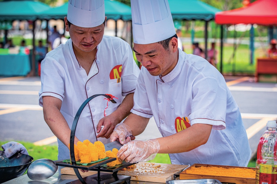 6月21日,竹山县首届美食文化活动暨特色餐饮技能大赛在宝丰镇龙井村举行。全县50多位民间烹饪高手大展厨艺,争“香”斗“宴”,展开了一场创意与技术的大比拼。大赛活动将持续至7月底,最终将评出“竹山十大名菜、竹山十大名优小吃、竹山十大名厨”。据了解,为推动农旅融合发展,竹山县挖掘整理地方特色菜品,向游客展示具有地域特色的菜品制作技艺,赋能全域旅游,激发消费活力,助推乡村振兴。通讯员章磊方建华摄