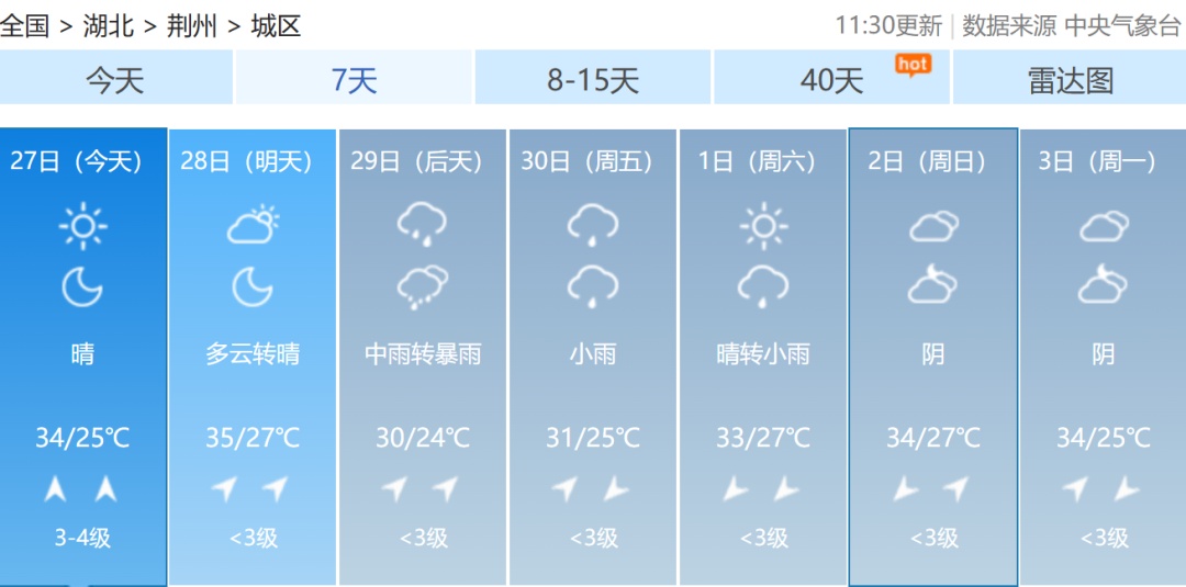 荆州市气象台发布