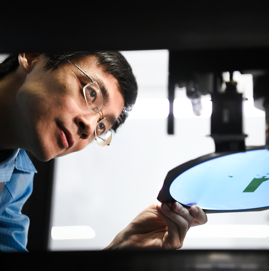 冯新康在实验室晶圆切割设备上进行工艺调试。记者高勇 摄