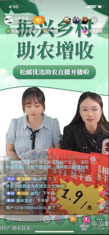 松滋邮政将全力打造“抖音+拼多多+短视频+直播”的线上营销平台,构建“供应链—直播—寄递—c端客户”运营模式,加快发展邮政农村电商,形成惠农生态圈,助力乡村产业发展。