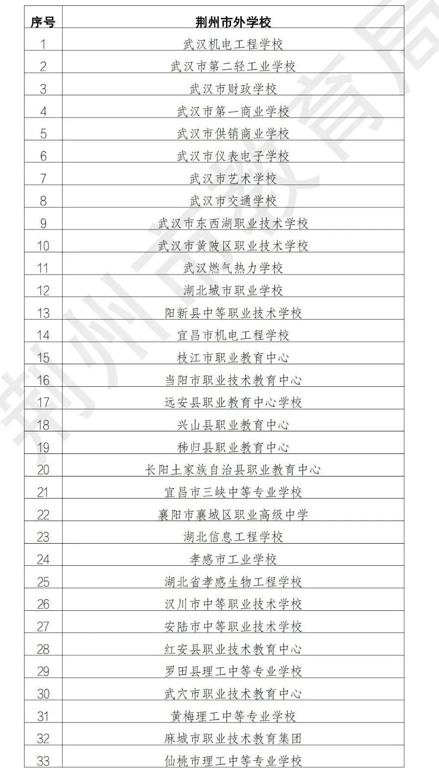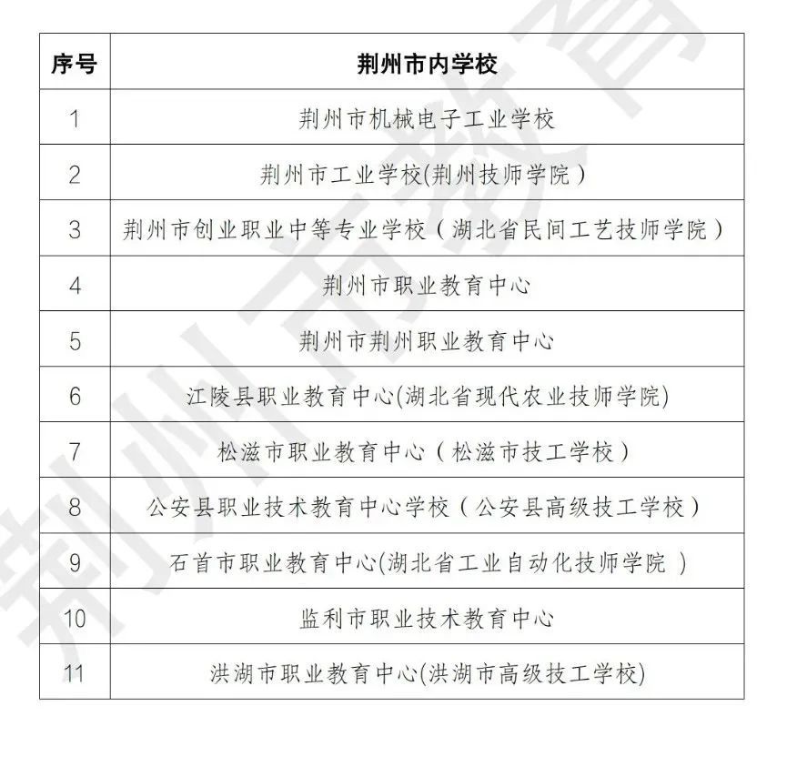 除以上学校之外的其他中职(技工)学校均未经荆州市教育部门备案,不具备在荆州市范围内招生资格。