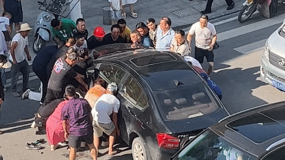 26名群众瞬间集结抬车救人