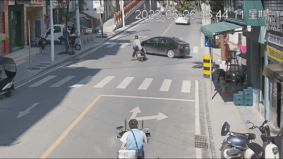 摩托车驾驶员被压在轿车车底