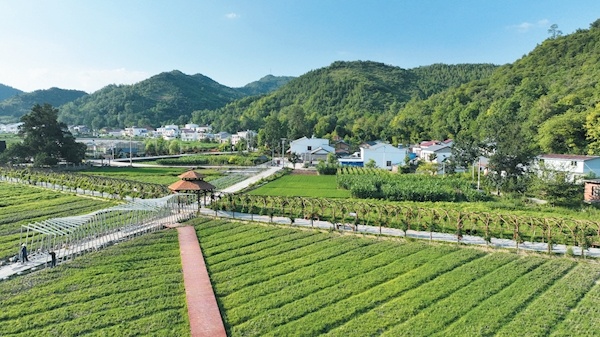 6月25日,记者走进房县化龙堰镇上湾村,只见村庄四处郁郁葱葱,地里作物长势喜人,几名施工人员正在安装观光廊道菱形钢架。近年来,该村加强农旅融合,营造宜居环境,着力建设农业产业观光园,提升农业产业附加值,有力带动村民增收。特约记者张启龙通讯员余杉摄