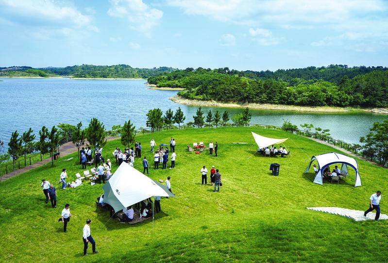 “月映山海,梦幻水乡”,由广水市创业创新产业发展投资有限公司投资1.5亿元在长岭镇联合村打造的月光海渔火露营项目,主体工程已经竣工。该项目规划建设房车区、渔火区、帐篷区、星空区等八个区,可以为游客提供别具一格的旅游体验,预计今年9月将正式开园迎客。 (随州日报全媒记者 李文军摄)