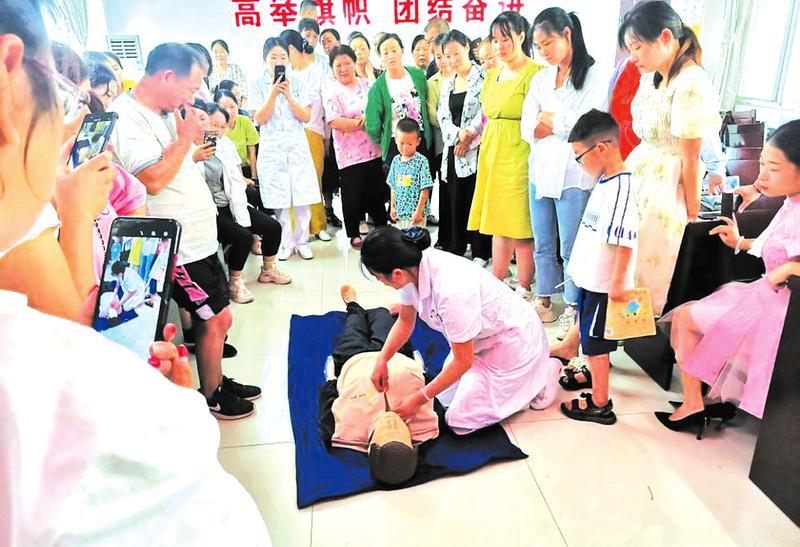 近日,随县万福镇卫生院医务人员开展急救知识进社区活动,现场演示急救技能、传授心肺复苏术等知识,受到了社区居民的热烈欢迎。 (随州日报通讯员彭晓东摄)