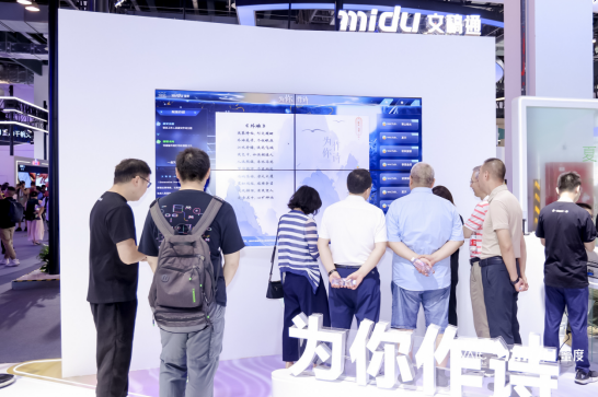 除了发布极具开创性的垂直领域大语言模型之外,蜜度还在展台现场展出了“AI明信片”“AI游中国”“为你作诗”多个AIGC沉浸式互动体验。