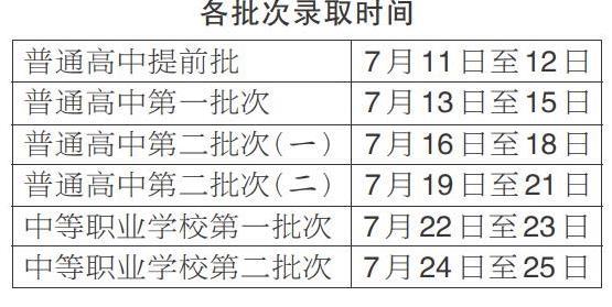 7月11日开始统一组织高中阶段学校招生、网上录取、签审录取结果等工作。