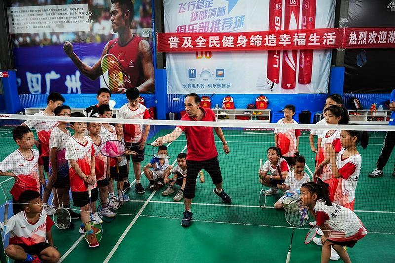 图为省级羽毛球教练刘传义在炎羽羽毛球馆指导青少年羽毛球训练。