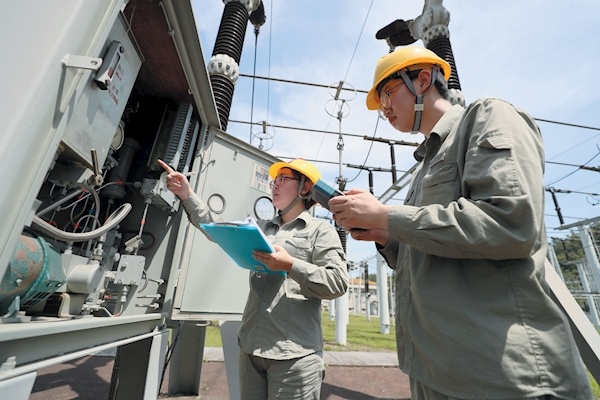 7月8日,国网十堰供电公司工作人员在220千伏龙虎沟变电站进行设备特巡。7月份以来,十堰气温持续升高,带动用电负荷激增。当日,十堰电网最大负荷突破148万千瓦大关,该公司科学调度电网负荷,积极开展特巡,应对用电高峰,保证全市电力供应。