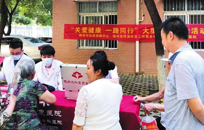 近年来,我市公益性社会组织蓬勃发展,广泛参与扶贫济困、扶老助残、乡村振兴、志愿服务等活动,在社会治理中发挥积极作用。图为7月8日,相关单位和社会组织到随州高新区熊家社区城东公租房开展义诊活动,将健康服务送到群众身边。 (随州日报通讯员 刘英摄)