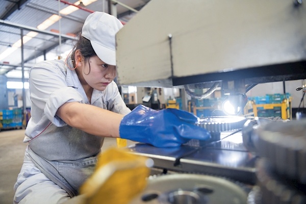 7月7日,东风汽车零部件(集团)有限公司刃量具分公司齿轮车间内机声隆隆,工人们冒着高温,全力赶订单、忙生产,确保顺利完成生产任务。记者 曾雨 通讯员 陈敏捷 摄
