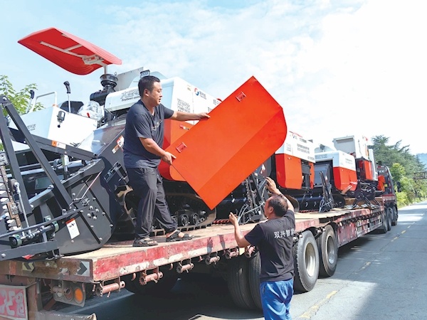 本报讯 7月11日9时,记者在位于茅箭区的湖北双兴智能装备有限公司看到,10台蚕豆联合收割机正在装车,两天后将交付给青海省西宁市客户。这标志着十堰造国内首款蚕豆联合收割机批量上市。