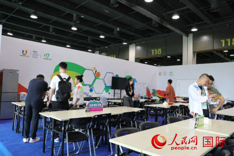 | 图为位于东安湖体育公园多功能体育馆内的志愿者之家 人民网记者 符园园摄 |