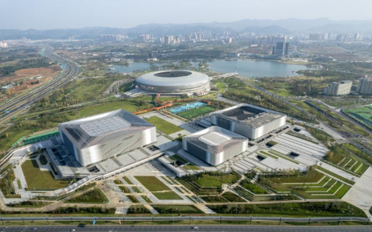 | 图为俯瞰东安湖体育公园的“一场三馆” 成都大运会主办方供图 |