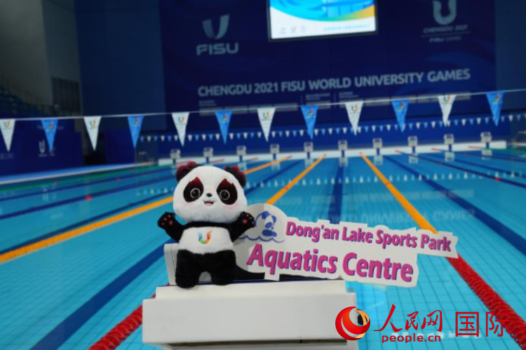 | 图为摆放在东安湖体育公园游泳跳水馆的成都大运会吉祥物“蓉宝” 人民网 周琳佳摄 |