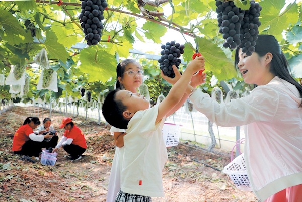 7月16日,游客在丹江口市习家店镇葡萄园采摘葡萄。当日,该镇第四届葡萄采摘节在习家店镇生态农业观光园开幕,吸引万余名游客前来体验采摘乐趣。近年来,该镇大力发展生态休闲农业,推进农旅融合发展,助力乡村振兴,带动农民增收致富。记者潘世新张潇潇摄