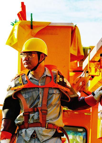 此次带电作业持续了20多分钟。当李晨辉从带电作业车的绝缘斗臂内下来时,工作服早已经湿透,紧紧地贴在身上,看上去就像刚从水里起来的一样,他接过同事递过来的水一饮而尽。