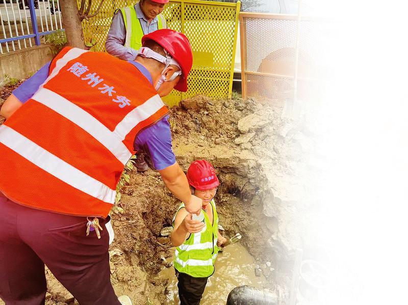 供水管网运维中心人员烈日下奋力抢修