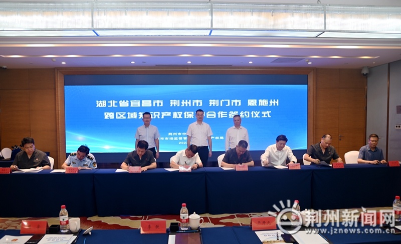为加强知识产权保护,优化知识产权公共服务,提升知识产权领域营商环境建设水平,7月18日上午,宜昌市、荆州市、荆门市、恩施州跨区域知识产权保护工作交流暨合作签约活动在荆州举行。