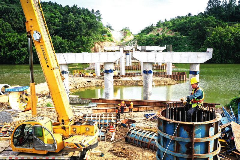 路桥工人:错开高温赶进度
