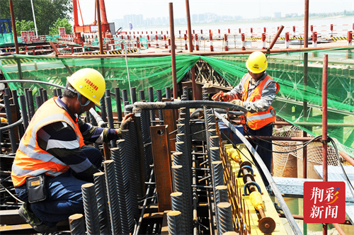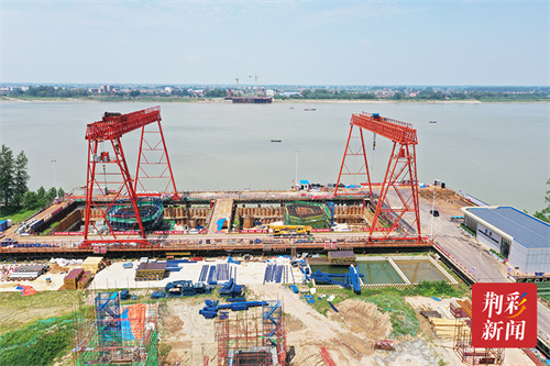 观音寺长江大桥下塔柱采用空心箱形混凝土截面,上塔柱采用双壁异型箱形钢壳-砼组合截面,两侧塔柱下各设一个承台。其中,2标段主要构筑物有:观音寺长江大桥江陵侧主桥、长江大桥引桥、跨荆江大堤大桥、马家寨互通主线桥等,整个大桥预计2026年底建成通车。