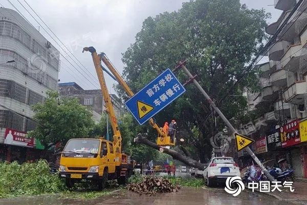 受台风“泰利”影响,广西多地出现道路积水、树木告示牌被吹倒。(图/中国天气网)