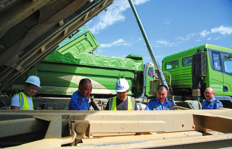 入伏以来,为规范建筑垃圾管理,确保渣土车辆运输安全,市城管执法渣土大队组织执法人员,对随州城区10家渣土运输公司的300余辆渣土车辆的标识标牌、定位系统、装载系统等进行检查,全面排查安全风险隐患,确保渣土车辆运输安全。 (随州日报通讯员 聂少峰、李玉平摄)