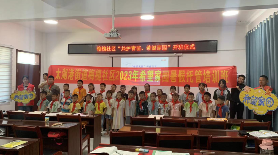 为解决辖区留守儿童群体暑期看管的问题,满足辖区日益增长的青少年共育需求,促进少年儿童健康成长,提高辖区未成年人思想道德建设水平,助力“深化共同缔造”与家校社共育,荆州高新区党群工作部、共青团荆州高新区委、太湖港街道团工委联合梅槐社区、太东社区组织开展“希望家园”活动,由社区“两委”、辖区学校老师、辖区内12名大学生志愿者为辖区80余名留守儿童开展“希望家园”暑期公益托管班,“希望家园”暑期社会服务项目的开展在辖区获得了广泛的认可,为社会工作的开展打下了良好的基础。
