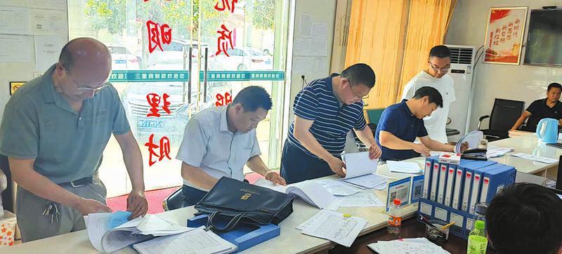 近日,多部门组成的联合检查组到随县三里岗镇财政所,对乡村振兴领域不正之风、农村集体资源发包和小型工程项目管理违规问题专项治理工作情况进行检查。检查组通过查阅资料、听取汇报、现场查看等方式,对农村集体资源、小型工程等台账逐一检查,切实维护农村集体资产不流失、农民利益不受损。 (随州日报通讯员 彭金波 王金龙摄)