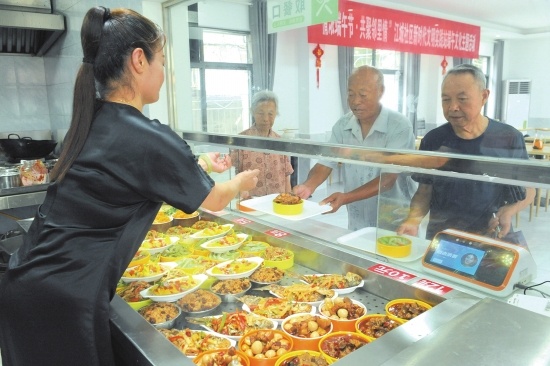 为方便留守、失独及长期无人照料老年人用餐,郝穴镇江城社区修建了幸福食堂,根据老年人的口味设置菜品,供其自由选择,深受大家好评,而且部分老年人每月还能享受用餐补助。(梅闻唐薇易炜璐摄)