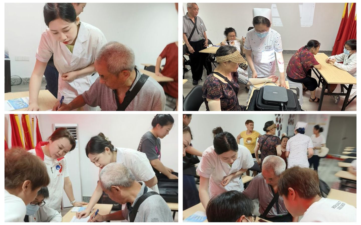 此外,神经内科护士还免费为前来参加本次讲座的中老年居民群众测量血压、血糖,李知莲副主任医师为居民群众提供各项专科体格检查,对中老年群众的疑问进行答疑解惑,与群众展开互动。