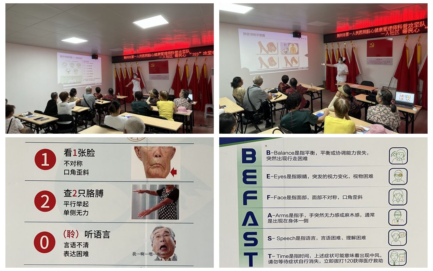 在活动现场,布置了条幅、展板,脑心健康管理师以幻灯片放映的方式,用通俗易懂的语言、生动形象的图片为中老年居民讲述脑卒中疾病的防治及医院急救绿色通道。