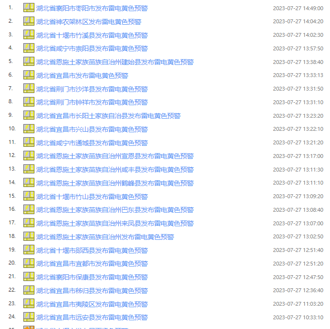 截至到发稿时间,湖北神农架、十堰等多地发布雷电黄色预警,请注意防范!