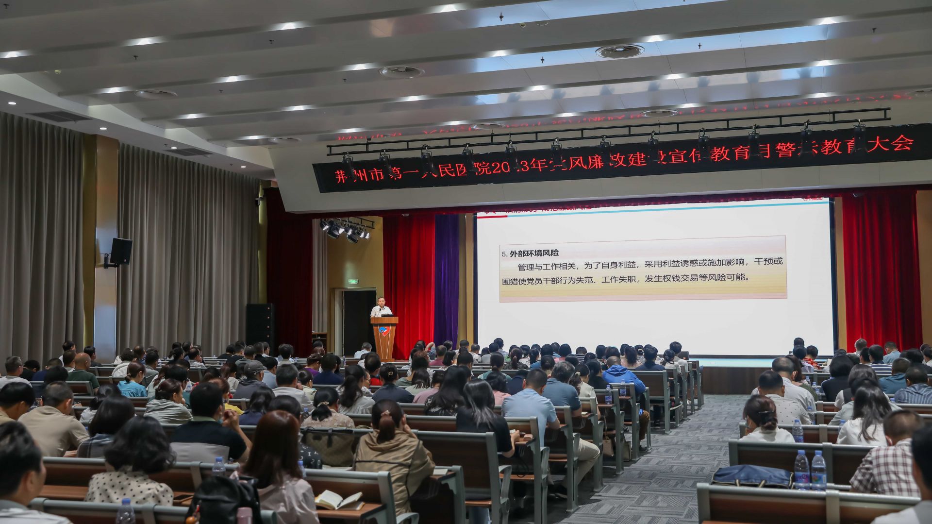 7月25日下午,荆州市第一人民医院召开2023年党风廉政建设宣传教育月活动动员会。医院党委书记杨继元,院长李茂坤,纪委书记张玥等院领导,以及党支部书记、纪委委员、中层干部共300余人参加,会议由李茂坤院长主持。