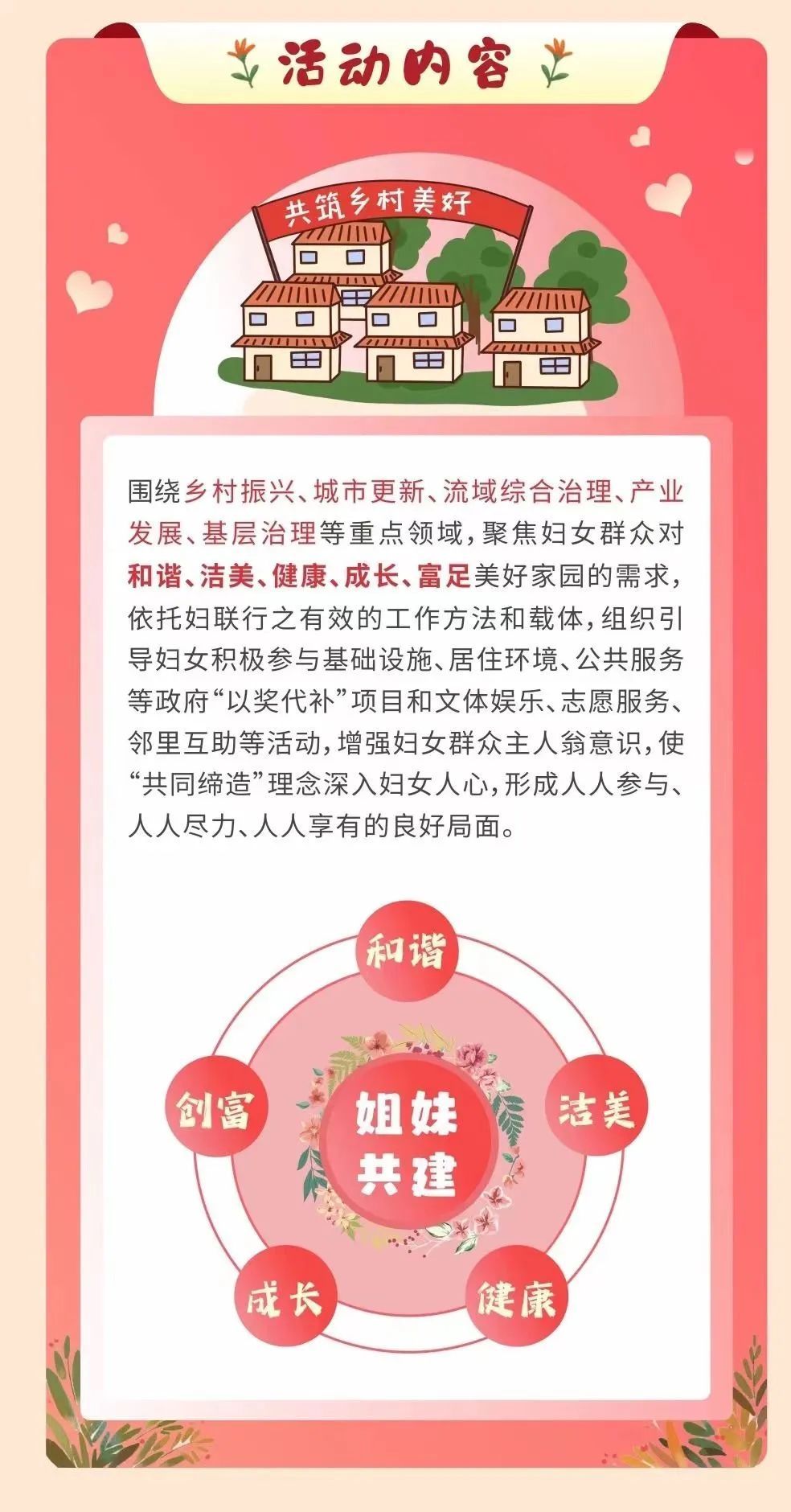 据了解,湖北美好环境与幸福生活共同缔造活动开展以来,各级妇联坚决扛起政治责任,明确工作目标,主动融入共同缔造实践,深入推进“姐妹共建·幸福家园”,一大批“五共”理念运用好、“一家一会一队”作用发挥好、幸福家园共建成效好的样板村(社区)推选展示出来,基层妇联组织体系和服务功能不断完善,广大妇女自我管理自我服务意识不断增强,妇女群众在共建共享中的幸福指数不断提升,基层妇女工作制度性成果不断形成,基层妇联焕发新气象、展现新作为。