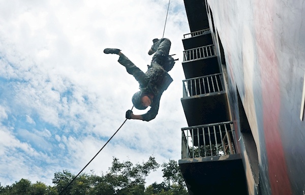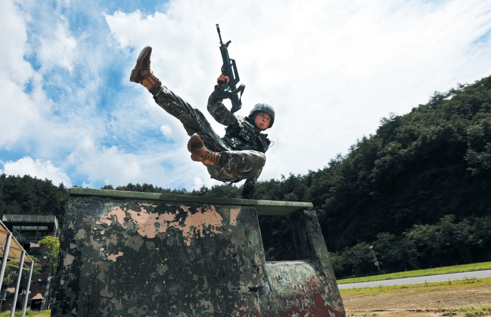 自“入伏”以来,十堰烈日炎炎、热浪翻滚,驻守在这里的武警十堰支队官兵以高温天气为契机,迅速掀起练兵热潮,开展“三伏砺精兵”活动,组织官兵对战术、障碍、战斗体能等多个课目进行强化训练,让官兵在高温酷暑中苦练杀敌本领,进一步磨砺官兵意志,全面提高官兵在高温条件下的身体极限和技战术水平,并以此向即将到来的“八一”建军节献礼。记者刘旻通讯员陶腾蛟摄