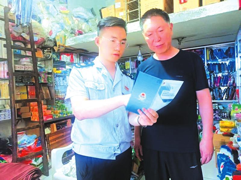 近日,随州高新区税务局组织青年税宣小队到辖区个体工商户门店开展税收宣传,帮助他们懂政策、知流程、能申报、会操作,最大限度释放政策红利。(随州日报通讯员 李莉摄)