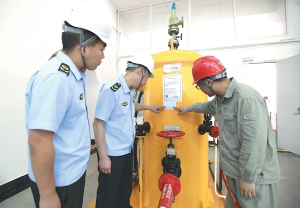 7月18日,竹山县市场监管局官渡市场监管所执法人员对官渡镇松树岭电站的特种设备进行安全检查,及时排除隐患,防范事故发生。特约记者 朱本双 通讯员 周勇 王金涛 摄