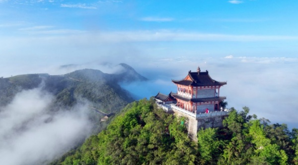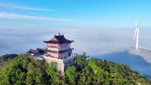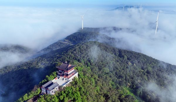 昨日早晨,修缮一新圣境山金鼎出现云海奇观,道路、建筑、风车、山峦、田野在云雾中若隐若现,构成了一幅幅美丽的画卷。据介绍,圣境山山势峻峭、景色秀丽,主峰灵芝峰海拔560.4米,有“小武当”之美誉。今年,东宝区子陵铺镇金泉村筹资对圣境山金鼎进行修缮,目前已基本完工,昔日“小武当”华丽归来。(记者 朱俊波 通讯员 余鹏泊 摄)