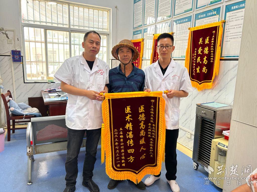 荆楚网(湖北日报网)讯(通讯员管菊艳)8月2日,一位患者家属,将写着“医德高尚暖人心,医术精湛传四方”的锦旗,送到了孝昌县王店卫生院。锦旗的背后,曾上演一场惊心动魄的救人故事。