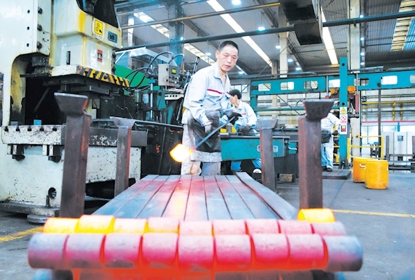 7月24日,在东风汽车底盘系统有限公司悬架弹簧工厂零件车间,工人们在加热炉前加紧生产。该公司在做好防暑降温、确保员工安全的前提下,战酷暑、抢进度、忙生产、赶订单,以优质产品保供应、稳市场。