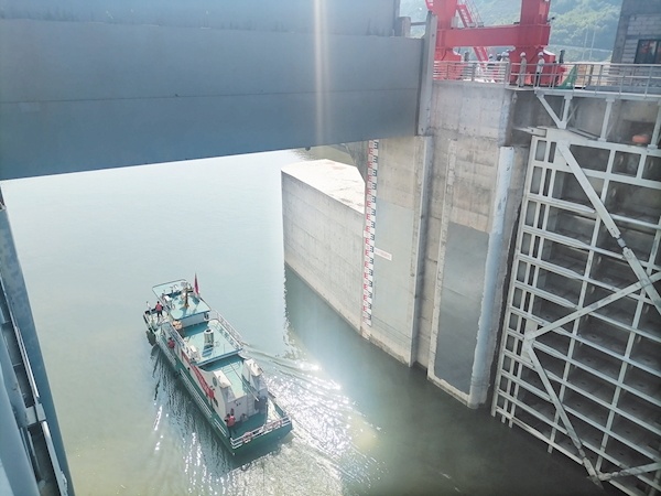 本报讯记者何利通讯 员 冀阳博 报道:8月4日,随着试验船舶驶出下闸首(如图),孤山航电枢纽船闸工程实船试验取得圆满成功,标志着船闸具备通航条件,航道工程建设任务全部按期顺利完成,船闸运行进入倒计时。