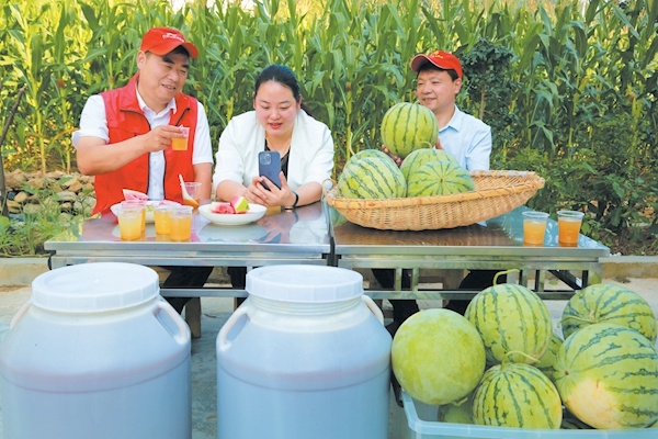 8月3日,竹山县工商联、湖北贡水源公司工作人员在文峰乡太和村开展直播带货活动,向网友推介土蜂蜜等农产品。同时,在微信、抖音等平台发布销售信息,获订单50余单,架起了农产品从田间到市场的“直通车”。当天,仅土蜂蜜一项成交金额就达2万余元。通讯员陈昌荣高鹏摄