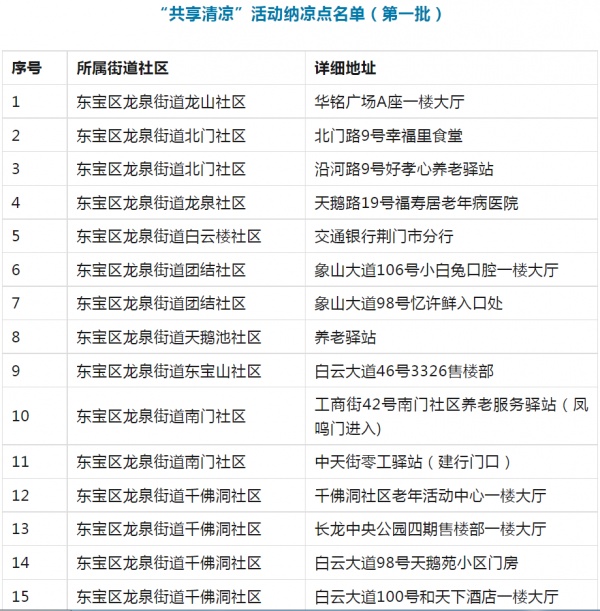 备注:全市各村(社区)党群服务中心均已开放纳凉点,不再另行发布。