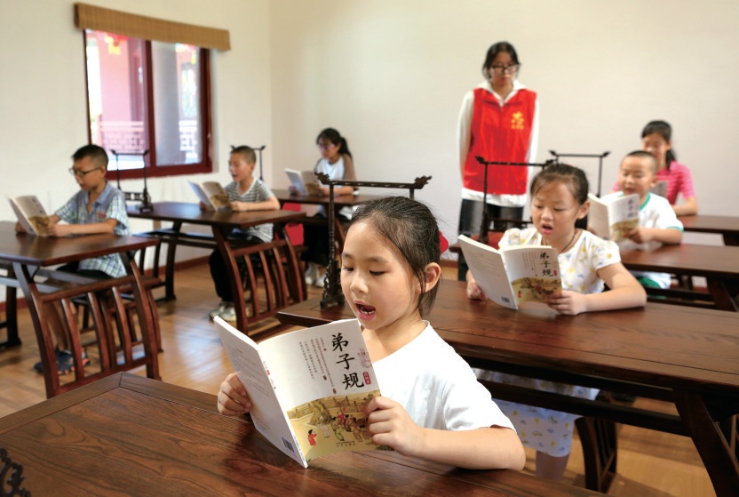 在花果街道花果村的暑托班里,传来孩子们朗朗读书声。