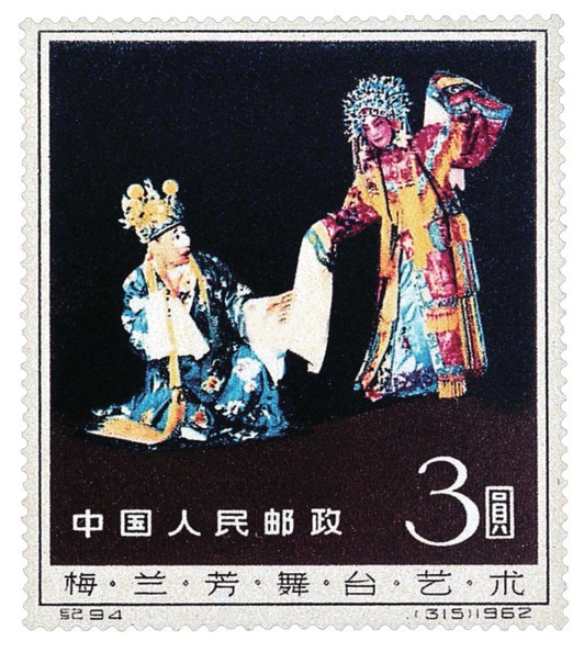 1961年8月8日,梅兰芳先生病逝。为了纪念这位世界闻名的艺术大师,1962年8月8日,我国发行了纪94“梅兰芳舞台艺术”邮票(有齿和无齿)共8枚,以及面值为3元的小型张1枚。 在这次世界级珍邮展上,一枚面值为3元的小型张《梅兰芳舞台艺术》亮相。“之所以说这枚邮票‘最贵’,是说它的发行面值,1962年时的3元钱,可不是一个小数目。”现场讲解员介绍。