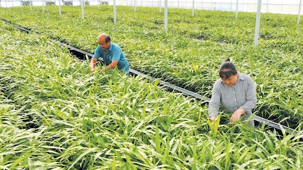 8月9日,房县门古寺镇狮子岩村中药材白芨种苗繁育基地,合作社人员正在清理杂草。该基地年均繁育中药材白芨、苍术、黄精种苗2000万株。近年来,房县实施“公司+合作社+农户”模式,促进中药材种苗繁育、种植、深加工融合发展,中药材种植面积超过50万亩,“房陵牌丹参、房陵本草牌柴胡、房陵本草牌白芨、武当牌克林新、百草传奇”获评湖北名牌产品,产品远销日本、韩国、越南等17个国家和地区,年均实现产值20亿元。特约记者 张启龙 通讯员 余杉 摄