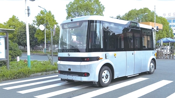无人驾驶智能微公交在十堰经开区部分工业园区试运行。