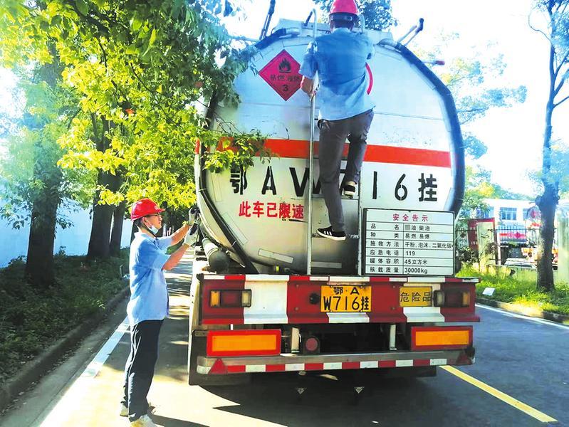 近期,湖北特检院随州分院迎来常压罐车检验高峰,分院检验员面对酷暑“烤”验,全力为危化运输安全保驾护航。图为分院检验员对常压罐车罐体壁厚进行检测。 (随州日报通讯员 王睿 李运健摄)